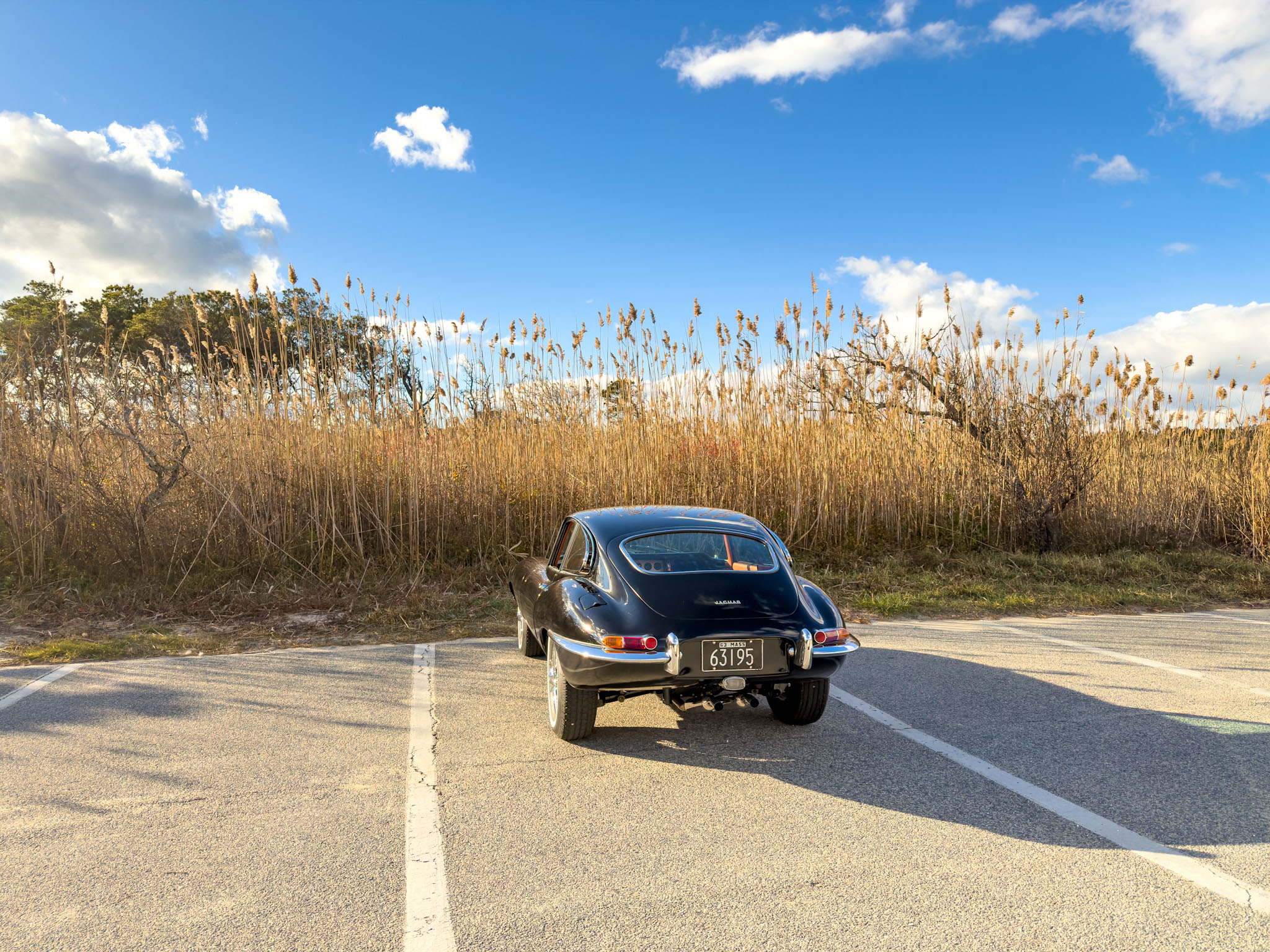 The 1964 Jaguar E-Type (Series 1, 3.8-litre) is pure automotive sculpture: a breathtakingly long, low bonnet flowing into a teardrop cabin and tapering tail, all wrapped around a monocoque tub and subframes with an almost indecent 8' 10" wheelbase-to-track ratio.